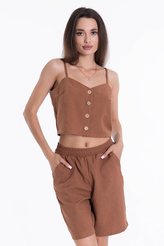 Шорты из полотна "искусственный лен". Удлиненные, пояс на резинке, боковые карманы.