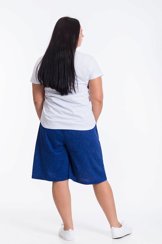 Женские удлинённые шорты расклешенного кроя — это стильный и комфортный вариант для повседневной носки. Изготовленные из однотонной кулирки с узором, они обеспечивают свободу движений и комфорт в течение дня. Пояс на резинке гарантирует удобную посадку, а боковые карманы добавляют практичности. Такие шорты подойдут для прогулок, неформальных встреч или отдыха. Они станут отличным дополнением к вашему гардеробу.
