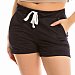 Шорты женские из х/б полотна с лайкрой. Для лучшей посадки по линии талии продёрнут шнур, а сзади в поясе проложена и зафиксирована эластичная резиновая тесьма. По бокам расположены карманы. Низ шорт оформлен отворотами.