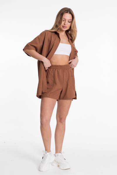 Шорты из полотна "искусственный лен". Пояс на резинке, боковые карманы.