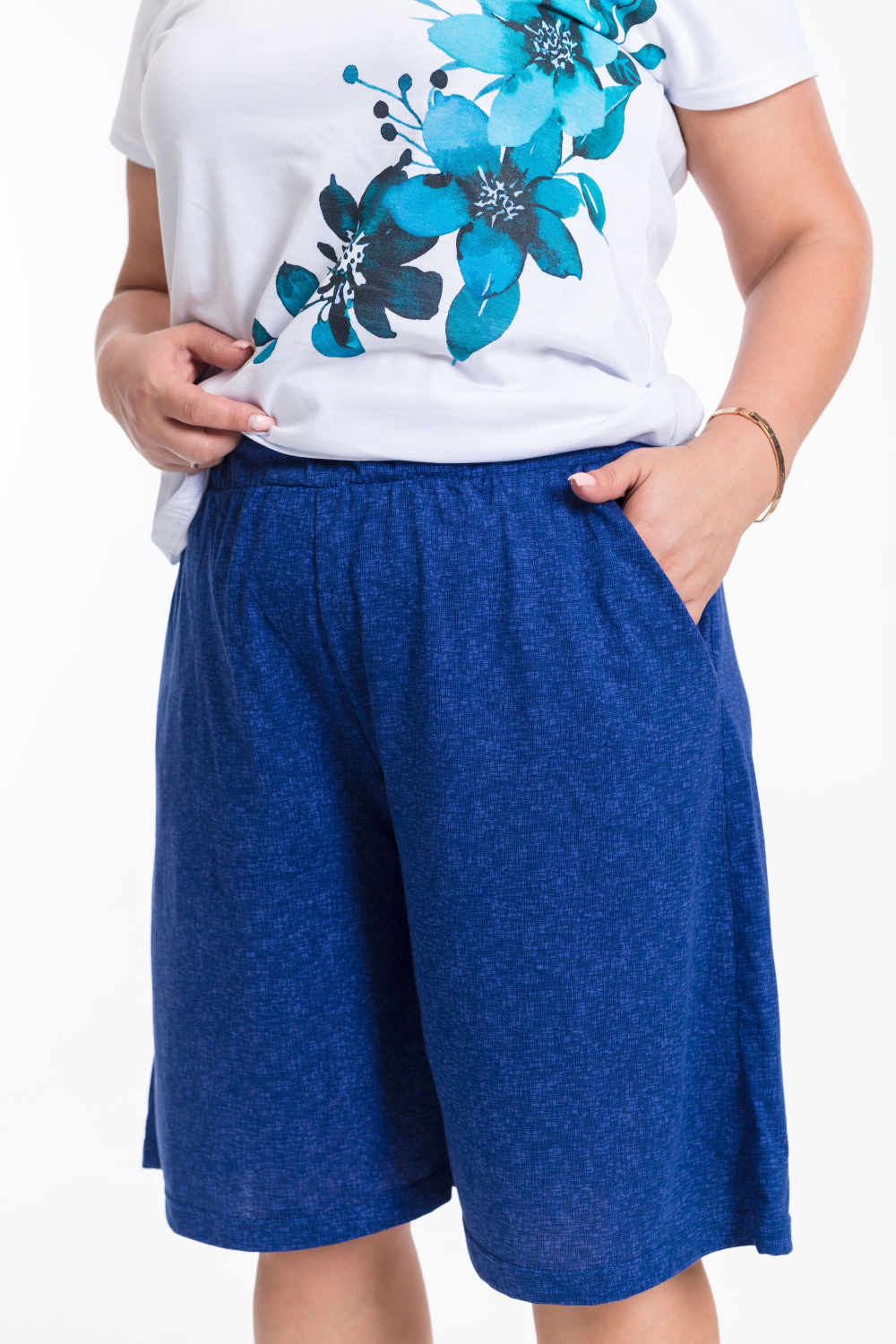 Женские удлинённые шорты расклешенного кроя — это стильный и комфортный вариант для повседневной носки. Изготовленные из однотонной кулирки с узором, они обеспечивают свободу движений и комфорт в течение дня. Пояс на резинке гарантирует удобную посадку, а боковые карманы добавляют практичности. Такие шорты подойдут для прогулок, неформальных встреч или отдыха. Они станут отличным дополнением к вашему гардеробу.