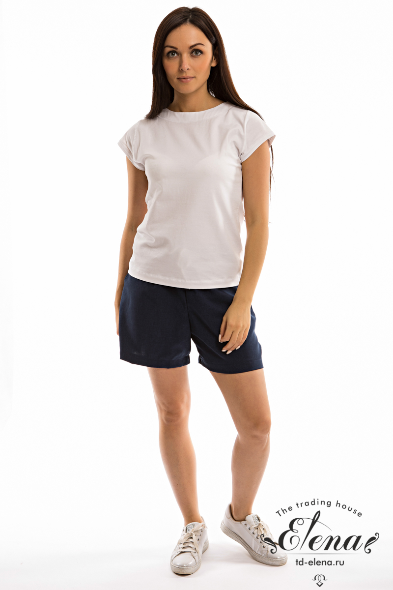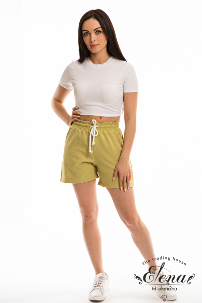 Шорты из однотонного искусственного льна, с боковыми карманами и притачным поясом на резине. Через петли пояса продёрнут шнур.
