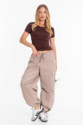 Шорты женские выполнены из футер петли (набивка), с накладными карманами и разрезами по бокам. Пояс шорт на резинке, сзади декоративные клапаны с пуговицами.