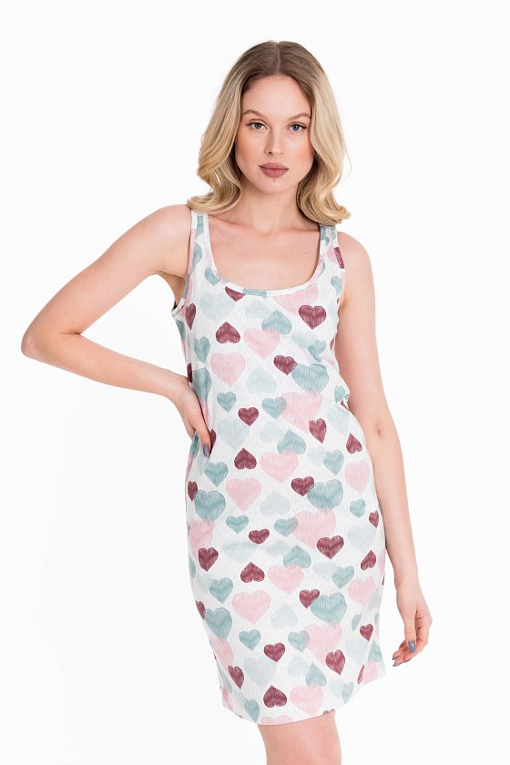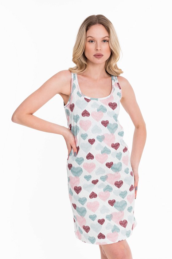 Сорочка выполнена из однотонной хлопковой ткани. Силуэт свободный, горловина с круглым вырезом.