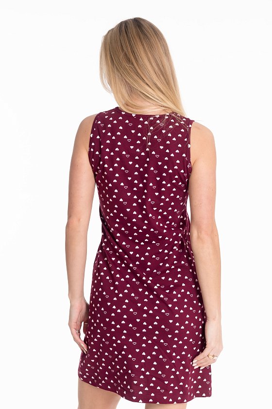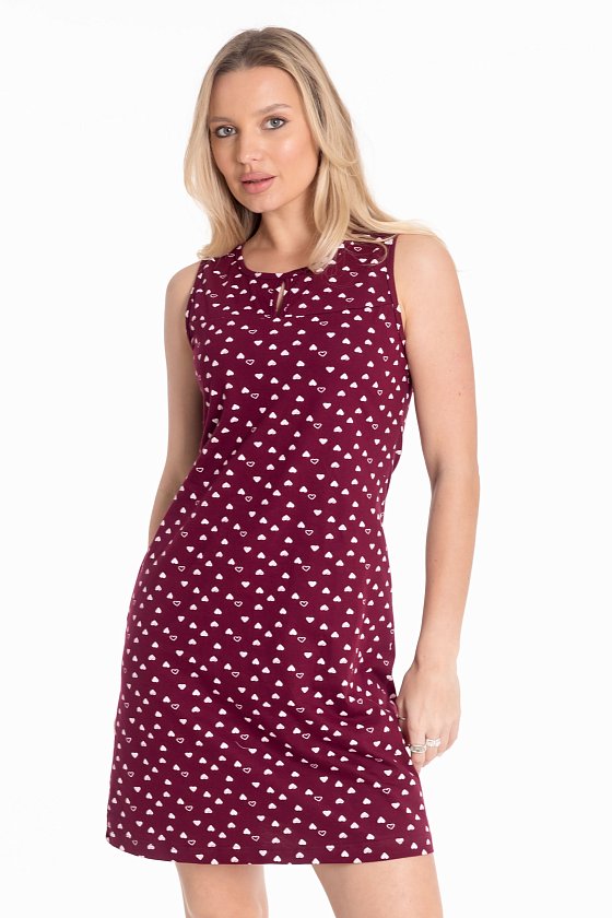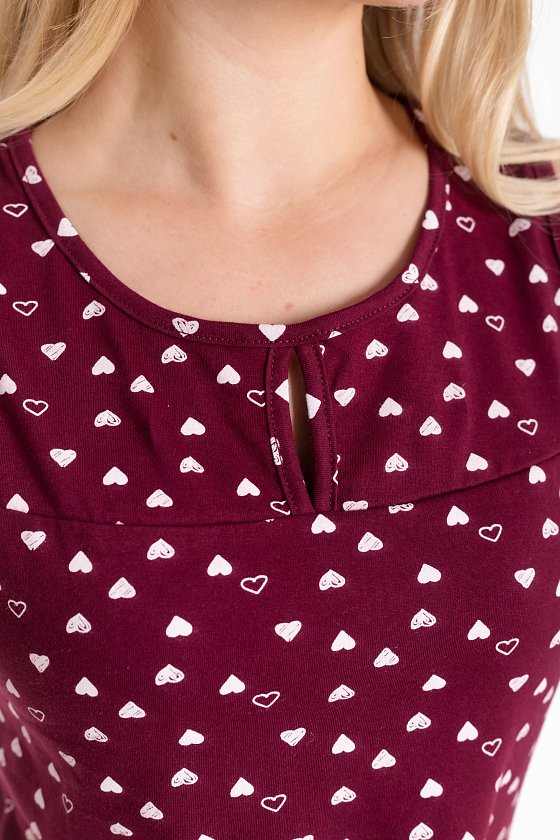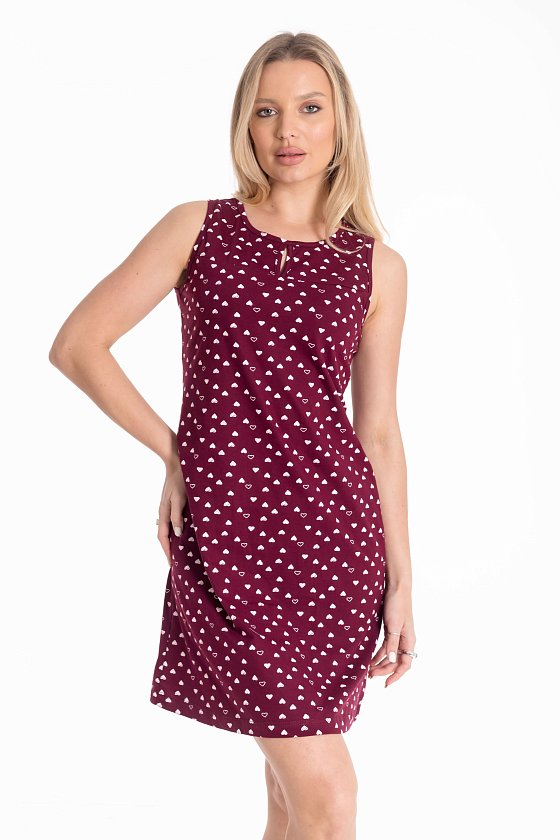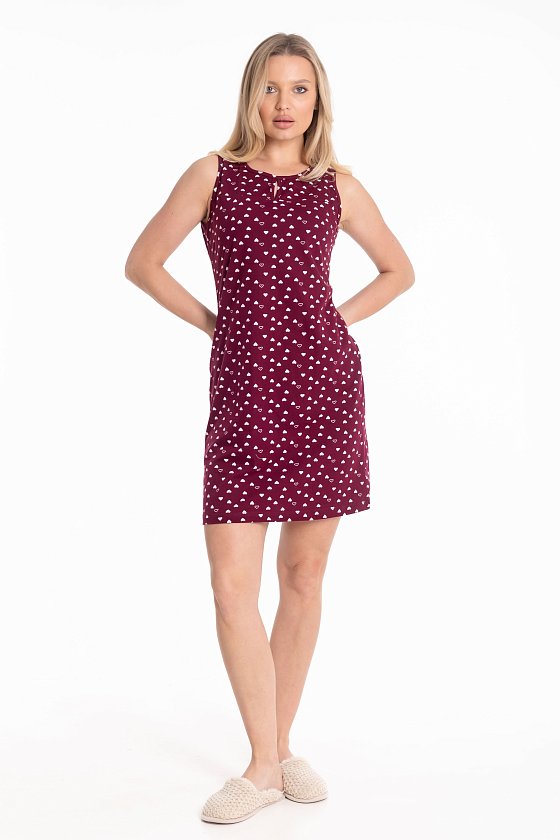 Сорочка выполнена из кулирки с набивным рисунком, спереди расположена кокетка с декоративным вырезом, обработанным бейкой. Сорочка лёгкая, комфортная и подходит для сна и домашнего отдыха.