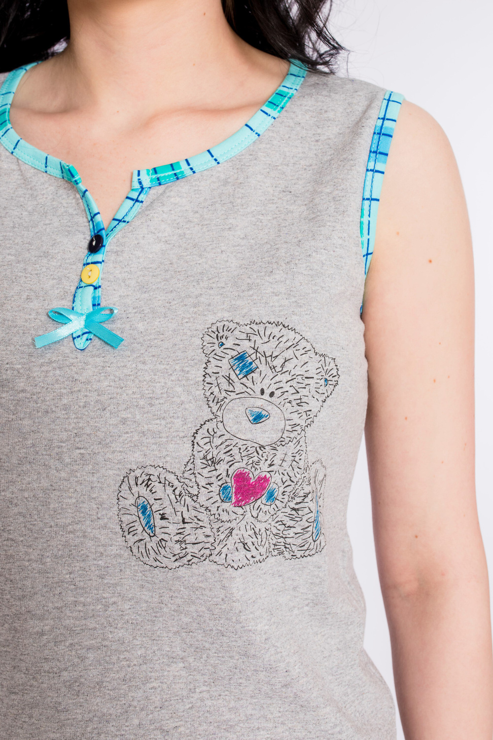 Сорочка молодёжная выполнена из кулирного полотна. Проймы, горловина и застёжка обработаны бейкой контрастного цвета. На застежке пришиты две пуговицы и бантик из атласной ленты. Спереди расположен принт.