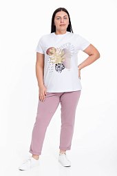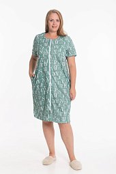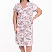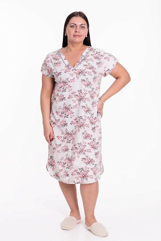 Сорочка свободного кроя выполнена из кулирки. Линия плеча спущена, рукава с разрезами. Горловина с V-образным вырезом с отделкой кантом. Внизу, в боковых швах изделия декоративные разрезы.