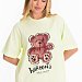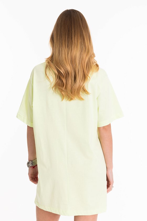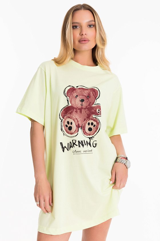 Сорочка-футболка выполнена из однотонной кулирки. С коротким рукавом и принтом спереди. Круглый вырез горловины оформлен планкой.
