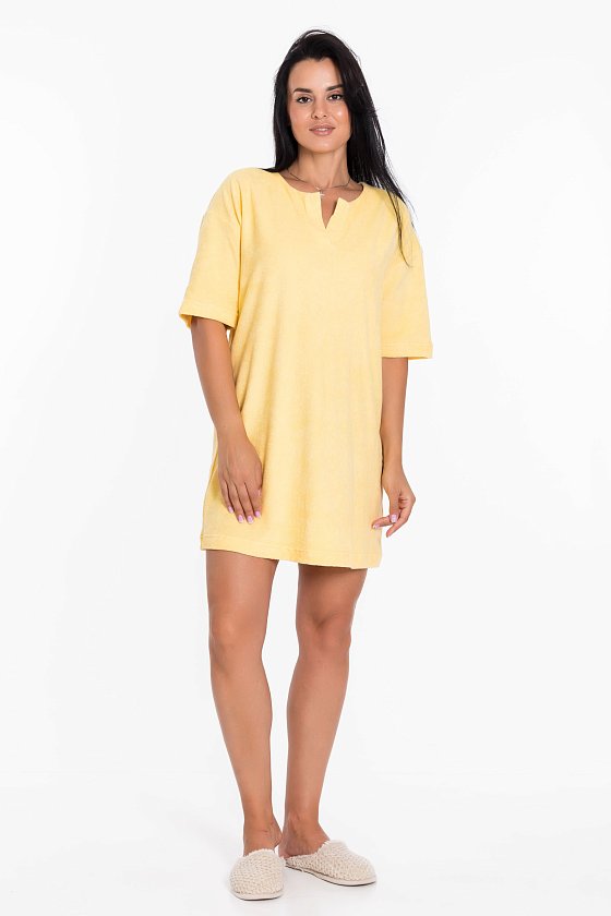 Женская сорочка из однотонной махры — отличный выбор для создания элегантного и комфортного образа. Она имеет прямой силуэт, который подходит для разных типов фигур, и спущенную линию плеча, что придаёт модели изысканность.