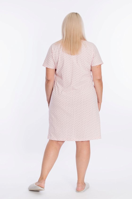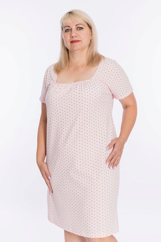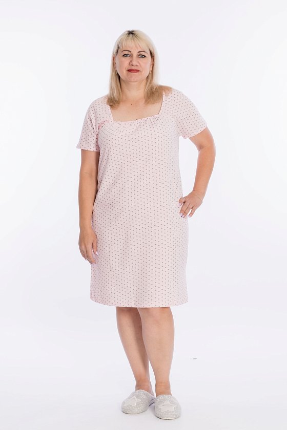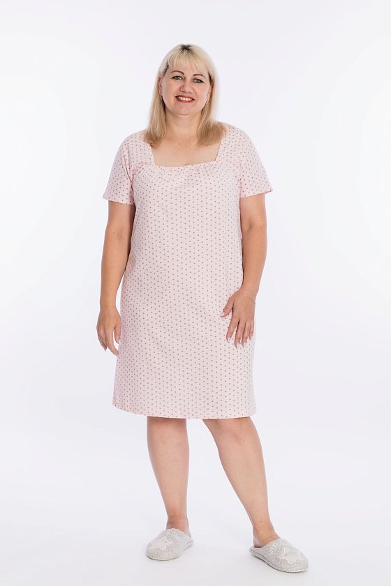 Сорочка свободного кроя выполнена из кулирки. С коротким втачным рукавом, спереди лёгкая сборка на резинку.