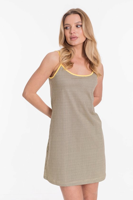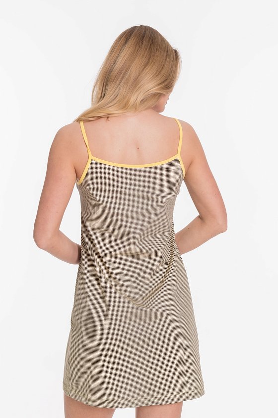 Сорочка на тонких бретелях, выполнена из 100% хлопка. Обтачка полочки и бретели обработаны бейкой.