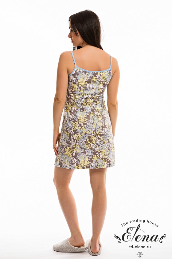 Сорочка на тонких бретелях, выполнена из 100% хлопка. Обтачка полочки и бретели обработаны бейкой.