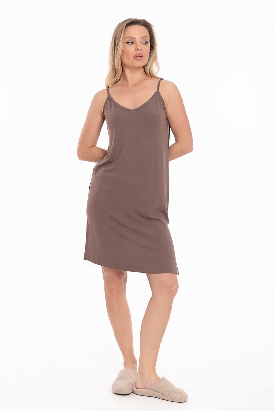 Сорочка на бретелях из мягкой однотонной вискозы — лёгкая и комфортная модель для дома и сна. Изделие длиной до колена имеет разрез в боковом шве слева, что придаёт удобство при движении. Бретели с регуляторами позволяют подстроить посадку по фигуре. Полотно приятно к телу и обеспечивает комфорт в носке.