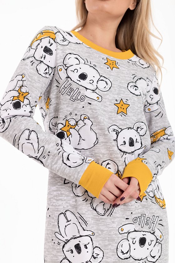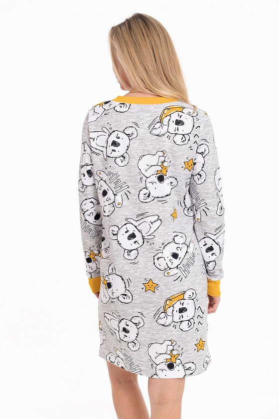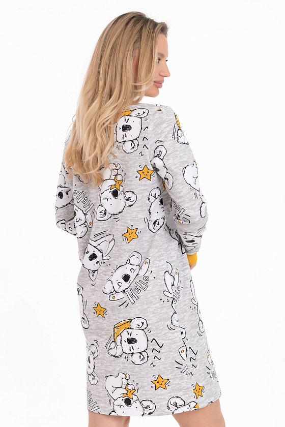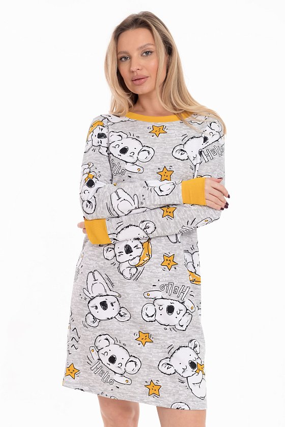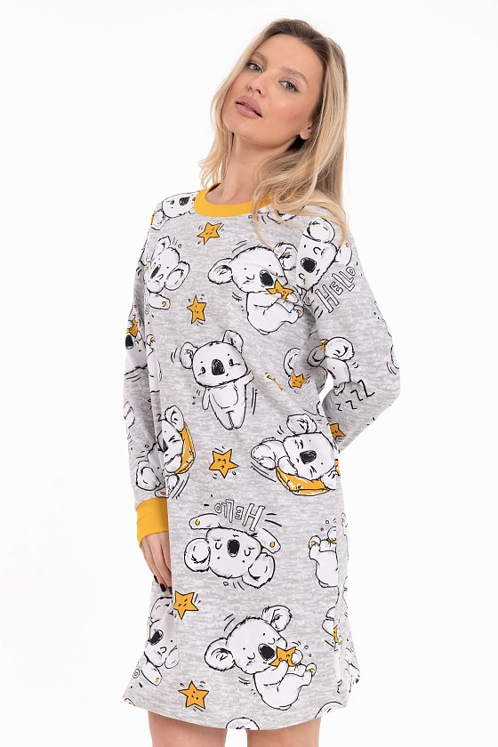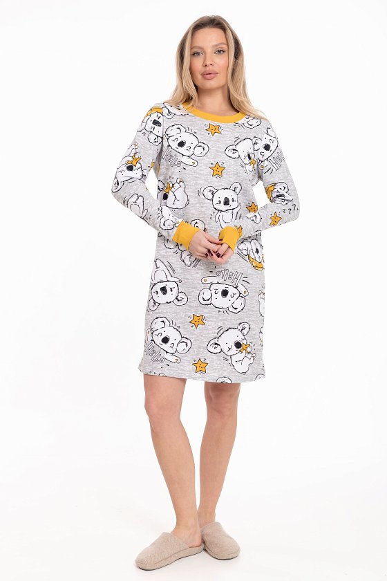 Сорочка из полотна с начесом — удобная и тёплая модель для комфортного отдыха. Изделие с длинным рукавом и классической посадкой обеспечивает уют и свободу движений. Детали из рибаны отделочного цвета: притачная планка по горловине и манжеты на рукавах — создают аккуратный вид и дарят ощущение комфорта.