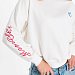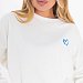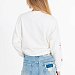 Женская толстовка выполнена из полотна футер трёхнитка (воздушка). Линия плеча спущена, длинные рукава заканчиваются манжетами. Спереди и на рукаве сделана оригинальная вышивка.