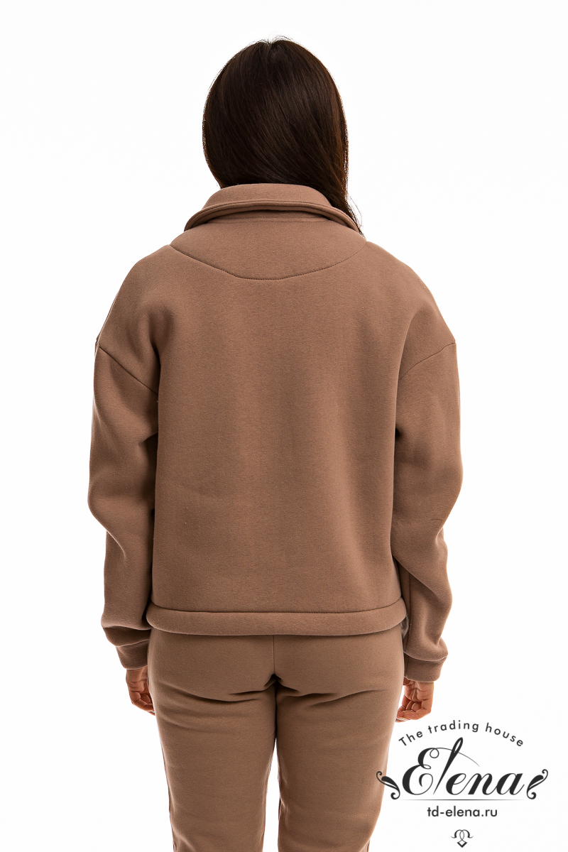 Тёплая, модная женская толстовка выполнена из полотна с начёсом (футер трёхнитка). Воротник отложной, длинные рукава заканчиваются манжетами из основного полотна. Толстовка застёгивается на пуговицы, спереди в верхней части размещены карманы с клапанами. Такая толстовка подойдёт для создания стильных и комфортных образов на каждый день.