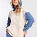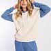 Женская толстовка выполнена из полотна футер трёхнитка (воздушка). Силуэт толстовки свободный, ширина капюшона регулируется шнуром. Линия плеча спущена, длинные рукава заканчиваются манжетами. Спереди располагается карман-кенгуру.