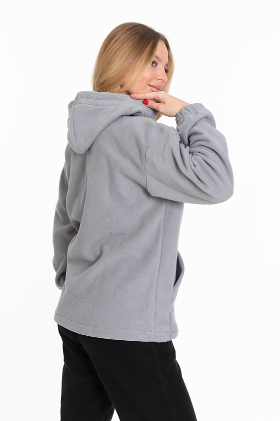 Женская толстовка свободного кроя — отличный выбор для повседневной носки. Она изготовлена из мягкого и тёплого однотонного серого флиса, который обеспечивает комфорт в прохладную погоду.