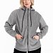 Женская толстовка свободного кроя — отличный выбор для повседневной носки. Она изготовлена из мягкого и тёплого однотонного темно-серого флиса, который обеспечивает комфорт в прохладную погоду. Толстовка имеет воротник-стойку, удобный капюшон и рукава на манжете с резинкой для защиты от ветра. Центральная застёжка на молнию и шнур в капюшоне выполнены в черном цвете, что придает изделию оригинальность. В накладные карманы удобно поместить необходимые мелочи. На передней части толстовки расположена вышивка. Эта толстовка идеально подойдёт для прогулок, активного отдыха или домашней носки. Она выполнена из качественного материала, который сохраняет форму и цвет после стирки, не скатывается.