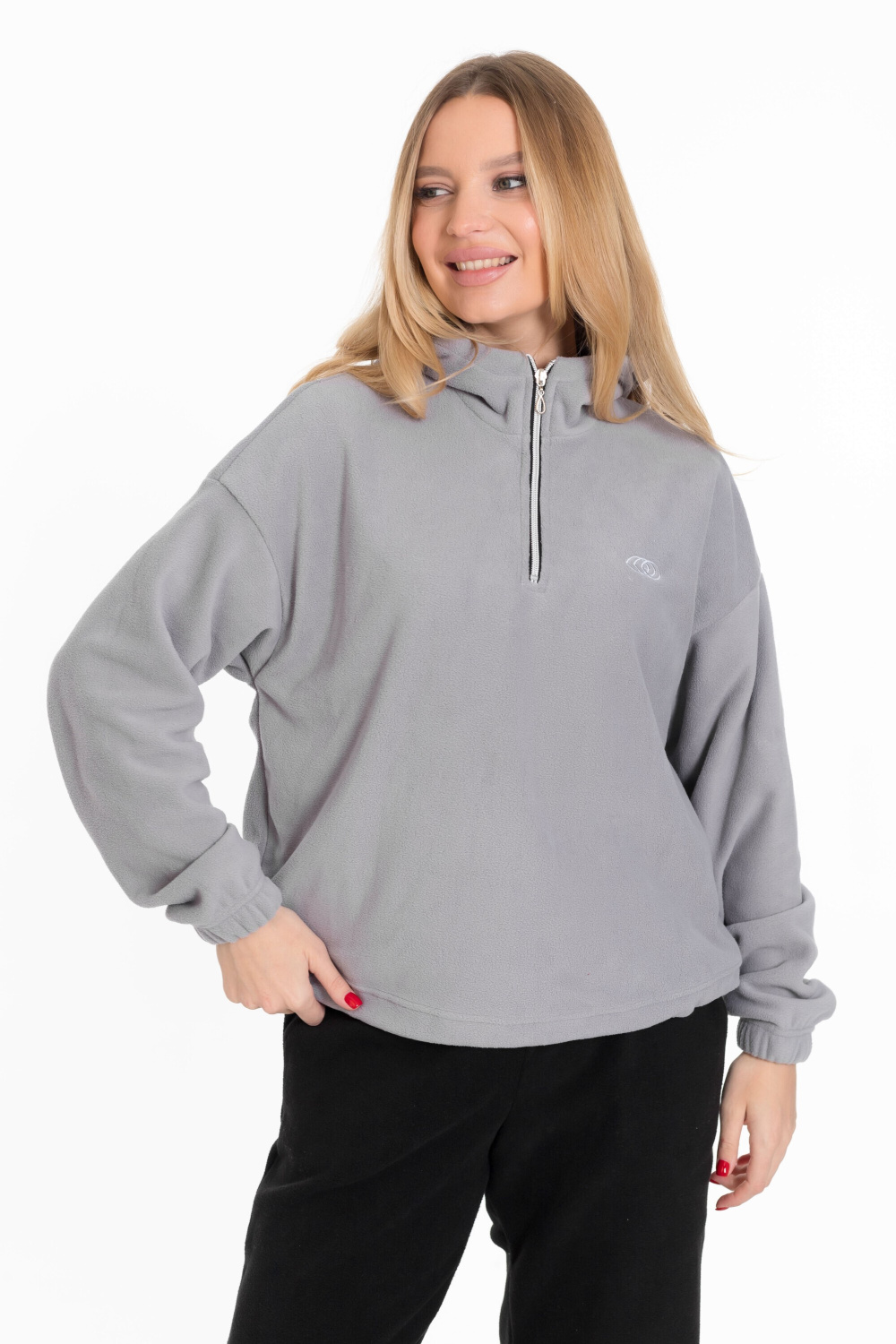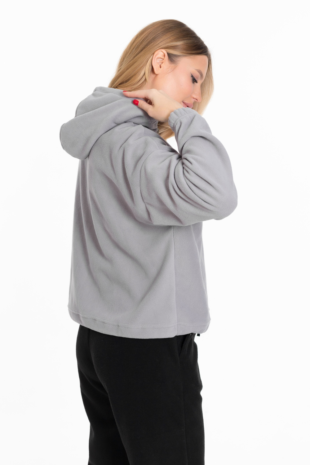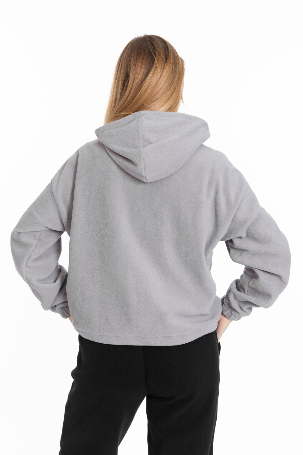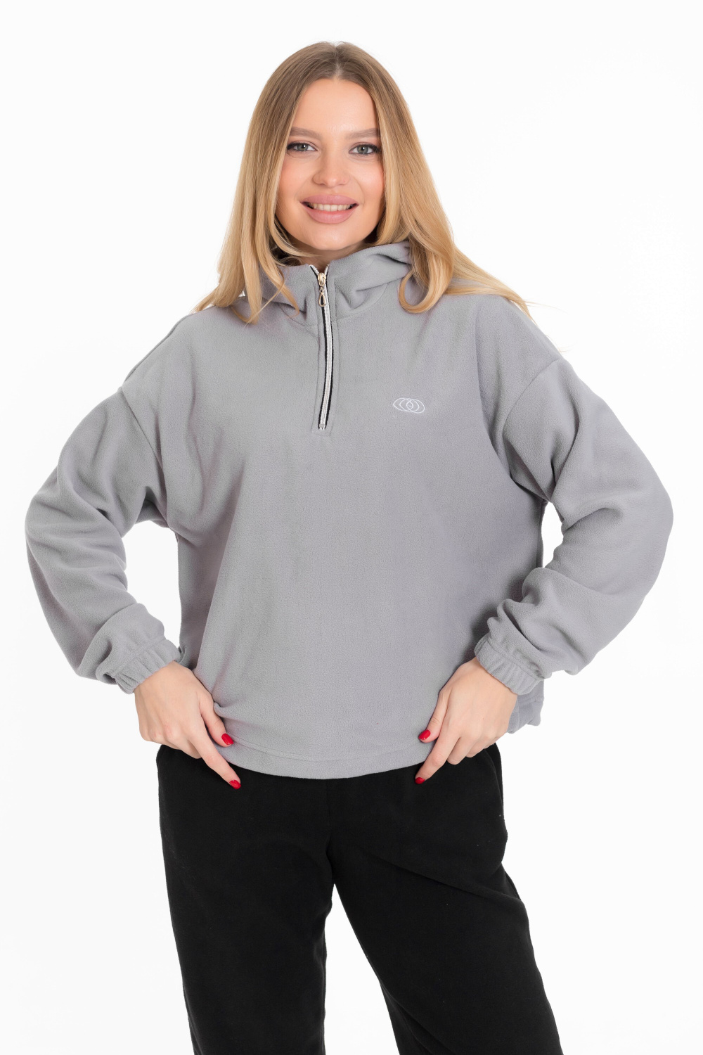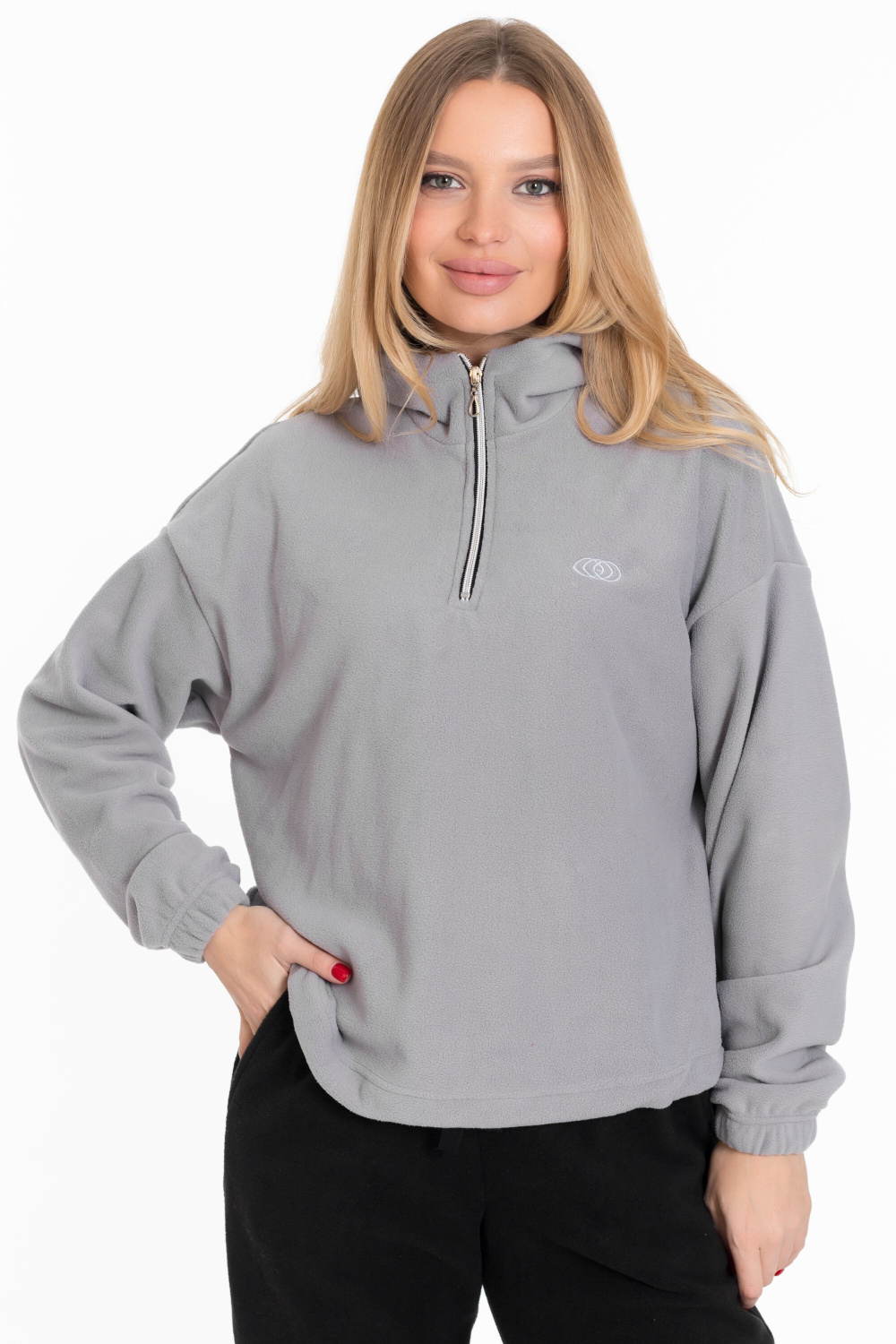 Женская толстовка из мягкого и тёплого однотонного серого флиса, который обеспечивает комфорт в прохладную погоду.