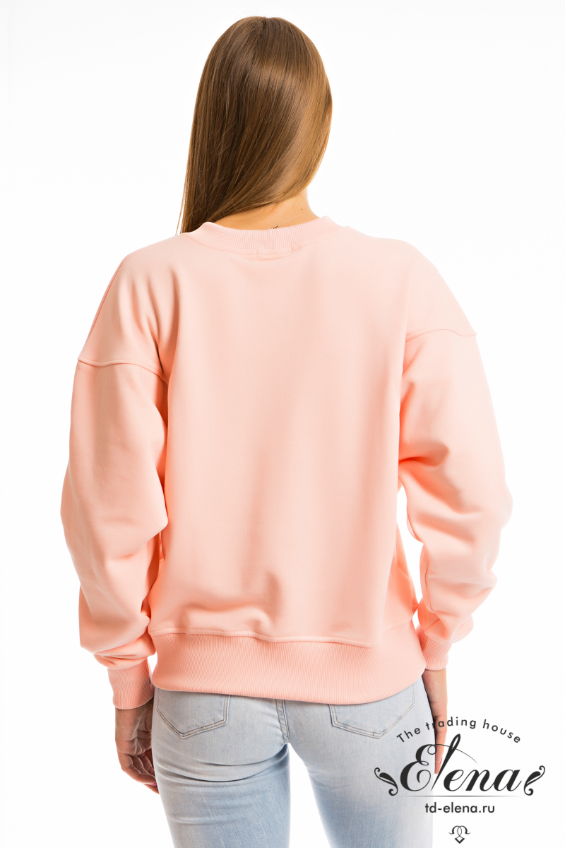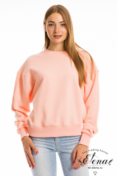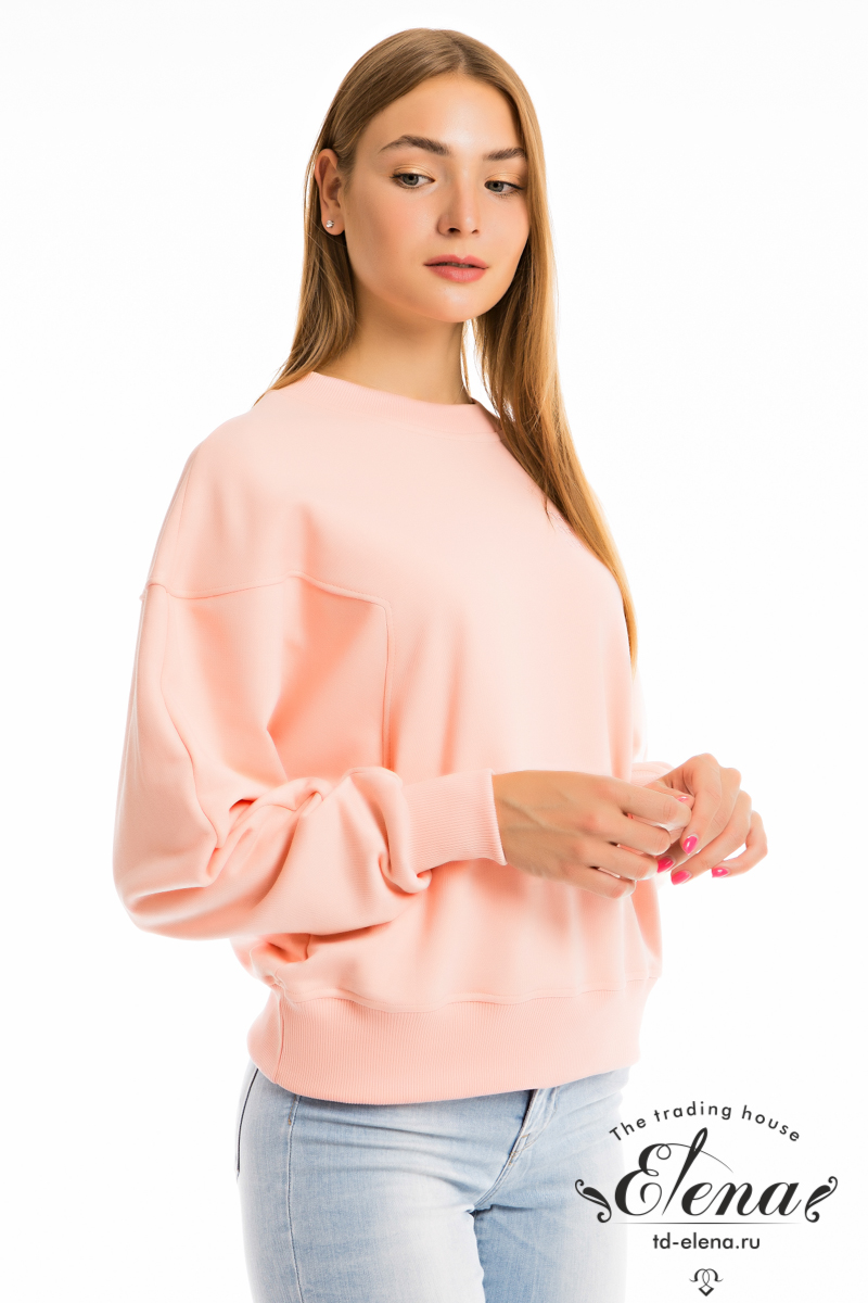 Толстовка из однотонного футера "воздушка", с рукавом покроя "летучая мышь". Спереди и на спинке фигурная линия рукава. Планка горловины, манжеты и пояс изделия из кашкорсе. Спереди вышивка.