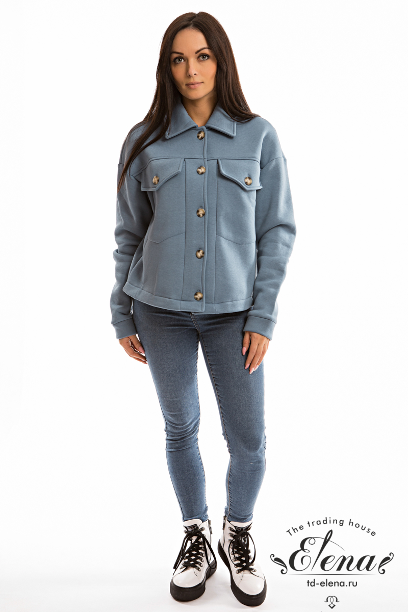 Тёплая, модная женская толстовка выполнена из полотна с начёсом (футер трёхнитка). Воротник отложной, длинные рукава заканчиваются манжетами из основного полотна. Толстовка застёгивается на пуговицы, спереди в верхней части размещены карманы с клапанами. Такая толстовка подойдёт для создания стильных и комфортных образов на каждый день.