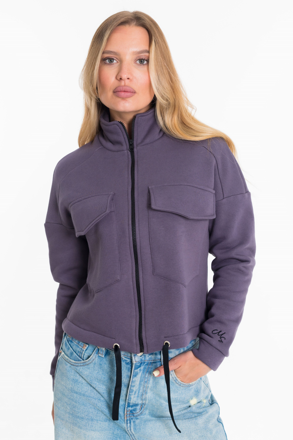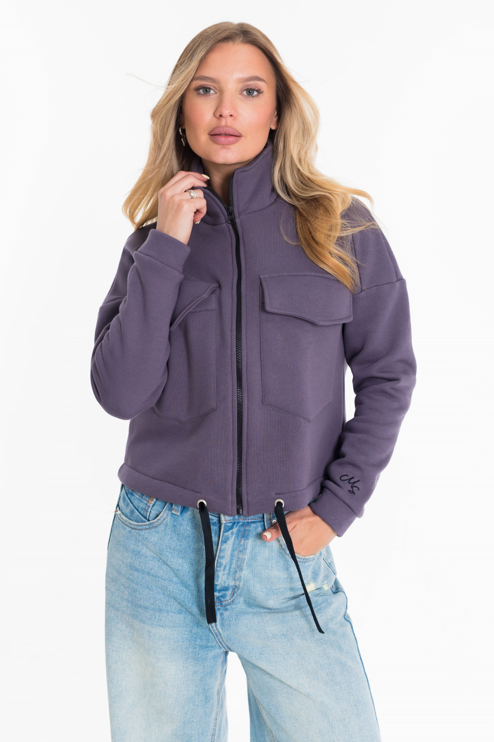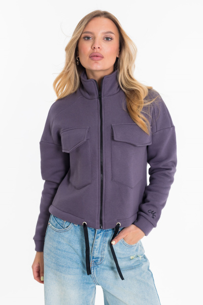 Тёплая, модная женская толстовка выполнена из полотна с начёсом (футер трёхнитка). Воротник-стойка, длинные рукава заканчиваются манжетами из основного полотна, на левом рукаве размещена вышивка. Толстовка застёгивается на молнию, спереди в верхней части размещены карманы с клапанами. Такая толстовка подойдёт для создания стильных и комфортных образов на каждый день.