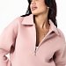 Женская толстовка с застежкой на короткую молнию и спущенной линией плеча. Модель выполнена из футера с начесом. Лаконичный дизайн дополнен стильной вышивкой с левой стороны. Манжеты рукавов и низ изделия оформлены планкой из основного полотна для аккуратного силуэта. Удобная и современная модель для повседневной носки.