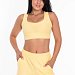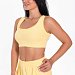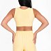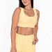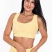 Топ имеет мягкий квадратный вырез, который выглядит элегантно и стильно. Горловина и проймы обработаны бейкой, что придаёт изделию аккуратный вид. Низ топа на резинке, что обеспечивает удобную посадку и хорошую фиксацию.