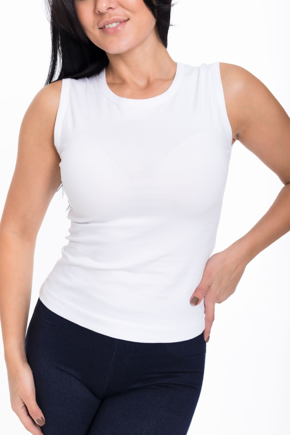 Женский топ из кулирки белого цвета - отличный выбор для повседневной носки.