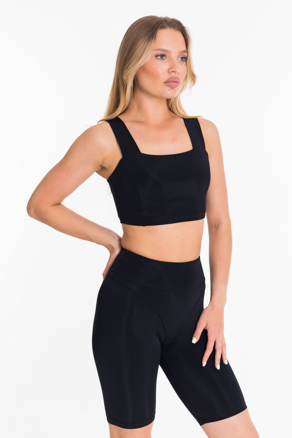 Топ из однотонного бифлекса с широкими бретелями — стильная и удобная модель для спорта и активного отдыха. Рельефные линии на полочках подчеркивают посадку и создают аккуратный силуэт. Эластичное полотно обеспечивает отличную растяжимость и комфорт при движении, сохраняя форму изделия даже при интенсивной носке.