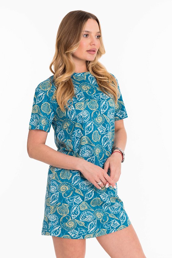 Туника из хлопкового полотна с набивным рисунком. Туника свободного силуэта, со спущенной линией плеча, низ со скруглением к боковым швам.