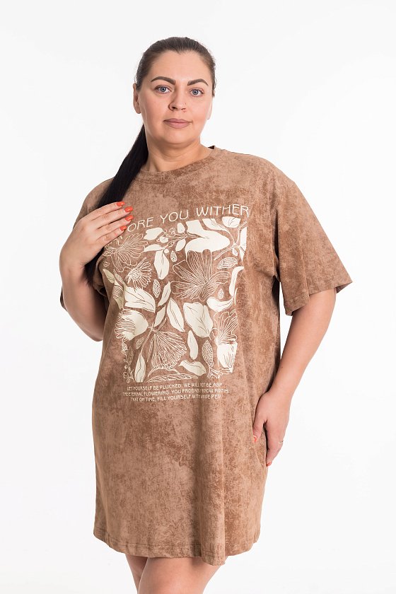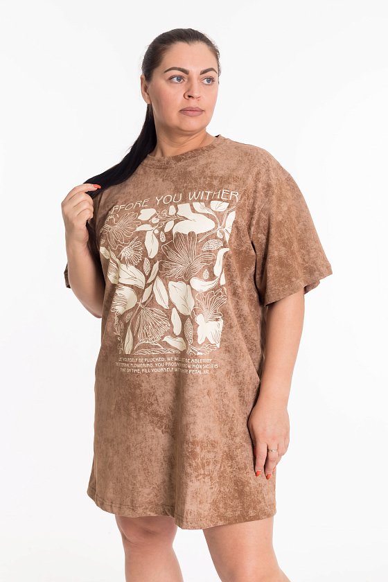 Туника свободного силуэта выполнена из хлопкового полотна. Прямой крой с коротким рукавом и круглым вырезом горловины делают ее комфортной и практичной в использовании. Принт на передней части добавляет игривости и оригинальности к изделию, придавая индивидуальность.Эта туника будет отличным дополнением к гардеробу. Уютный материал и стильный дизайн делают ее практичным и привлекательным элементом одежды.