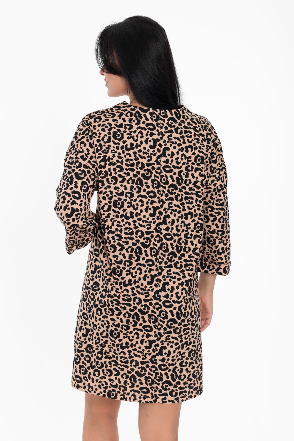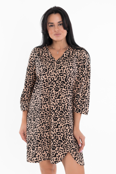 Женская туника из кулирки в бежевом цвете с набивным рисунком леопард - стильно и современно.
