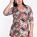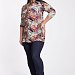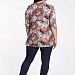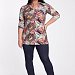 Женская туника выполнена из вискозы с набивкой. Силуэт полуприлегающий, с отрезной верхней частью на спинке и полочке. Спереди от фигурной линии отреза заложены мягкие складки. Вырез горловины V-образный, рукава длиной 3/4.