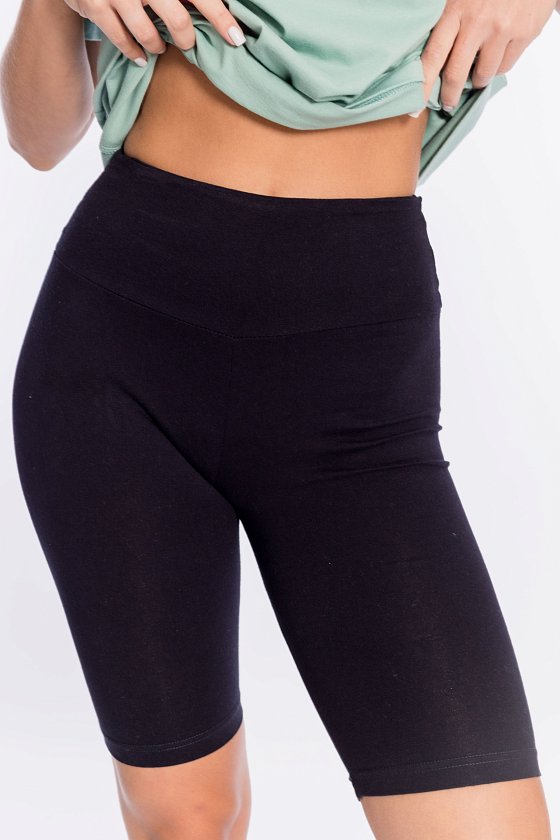 Велосипедки из однотонной кулирки с лайкрой с широким притачным поясом.