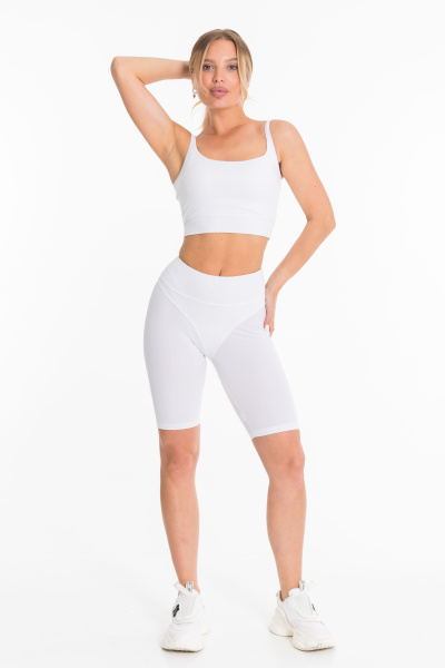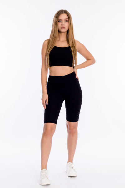 Велосипедки из однотонной кулирки с лайкрой с широким притачным поясом.