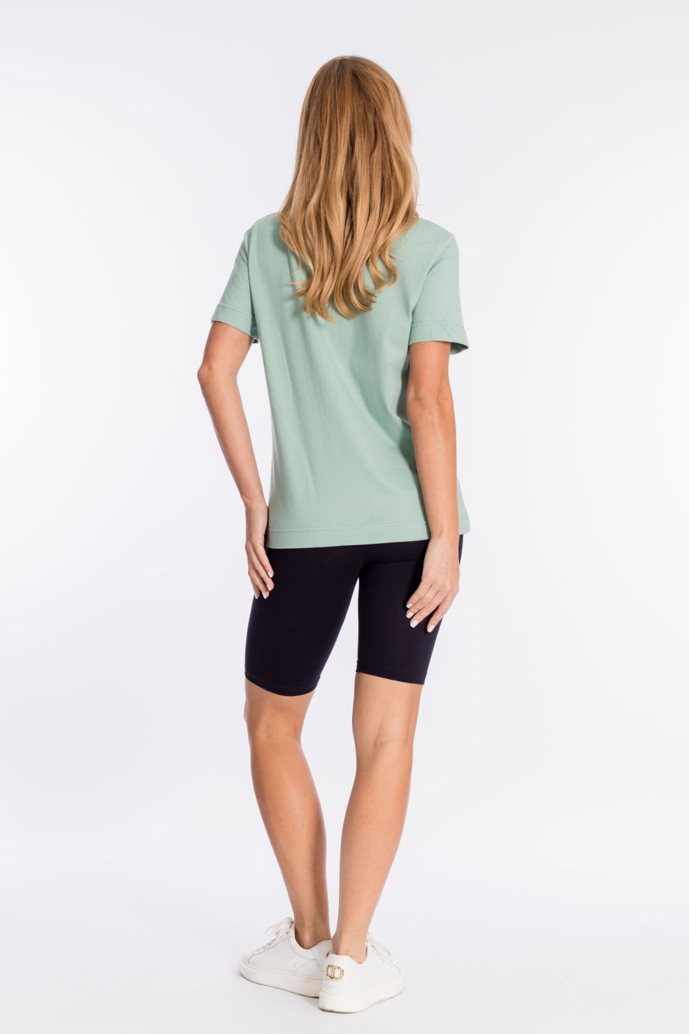 Велосипедки из однотонной кулирки с лайкрой с широким притачным поясом.