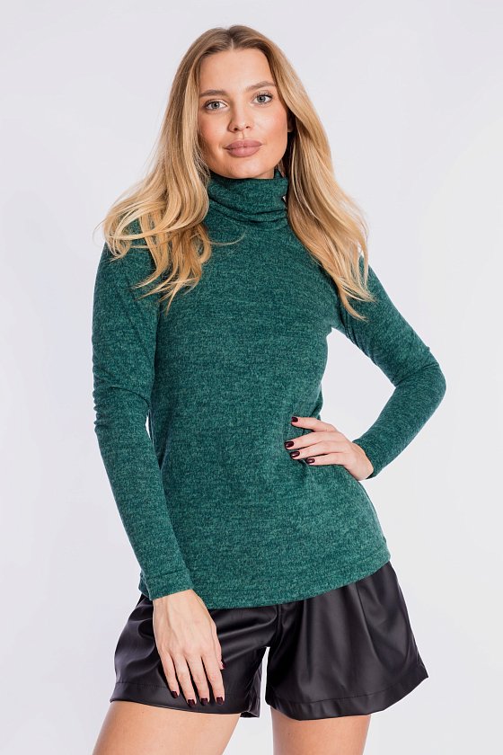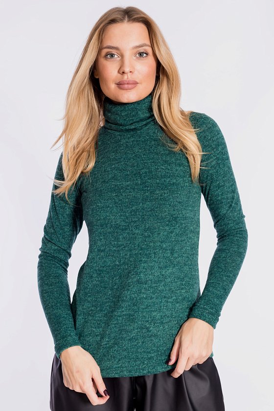 Водолазка женская выполнена из ткани с ангоркой. Водолазка прилегающего силуэта, с длинным рукавом и воротником-стойкой.