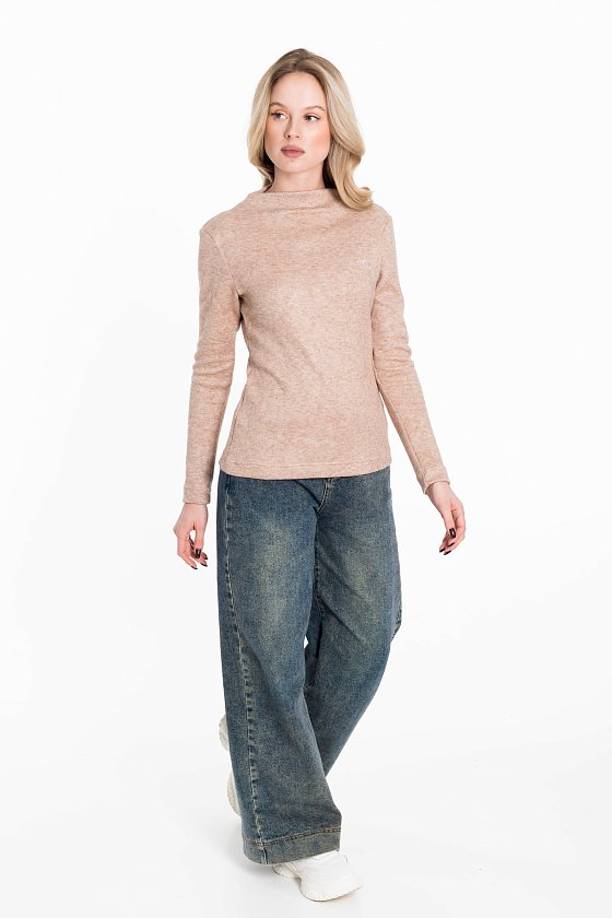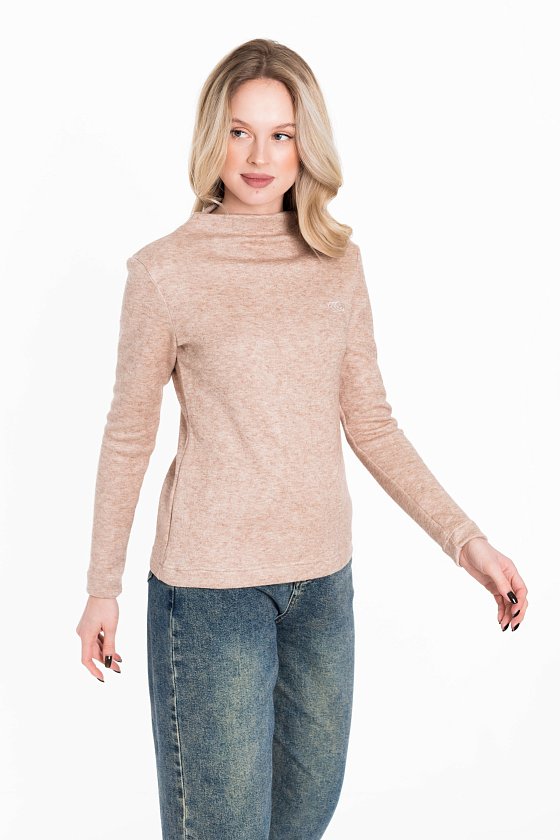 Женская водолазка выполнена из полотна "ангорка". С длинным втачным рукавом и элегантным цельнокроеным воротником. С левой стороны вышивка в виде логотипа. Невероятно мягкая и тёплая водолазка - идеальный выбор в прохладное время года, легко впишется в повседневный гардероб.