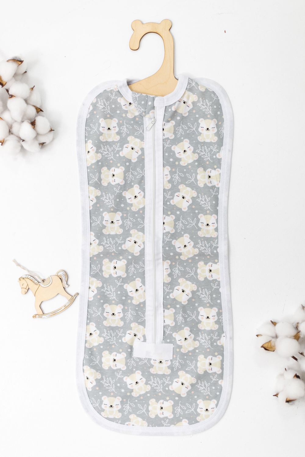 Кокон выполнен из интерлока и предназначен для сна ребенка. Внизу вставлена резина, слегка стягивающая низ. Отверстие даёт возможность легко сменить подгузник.