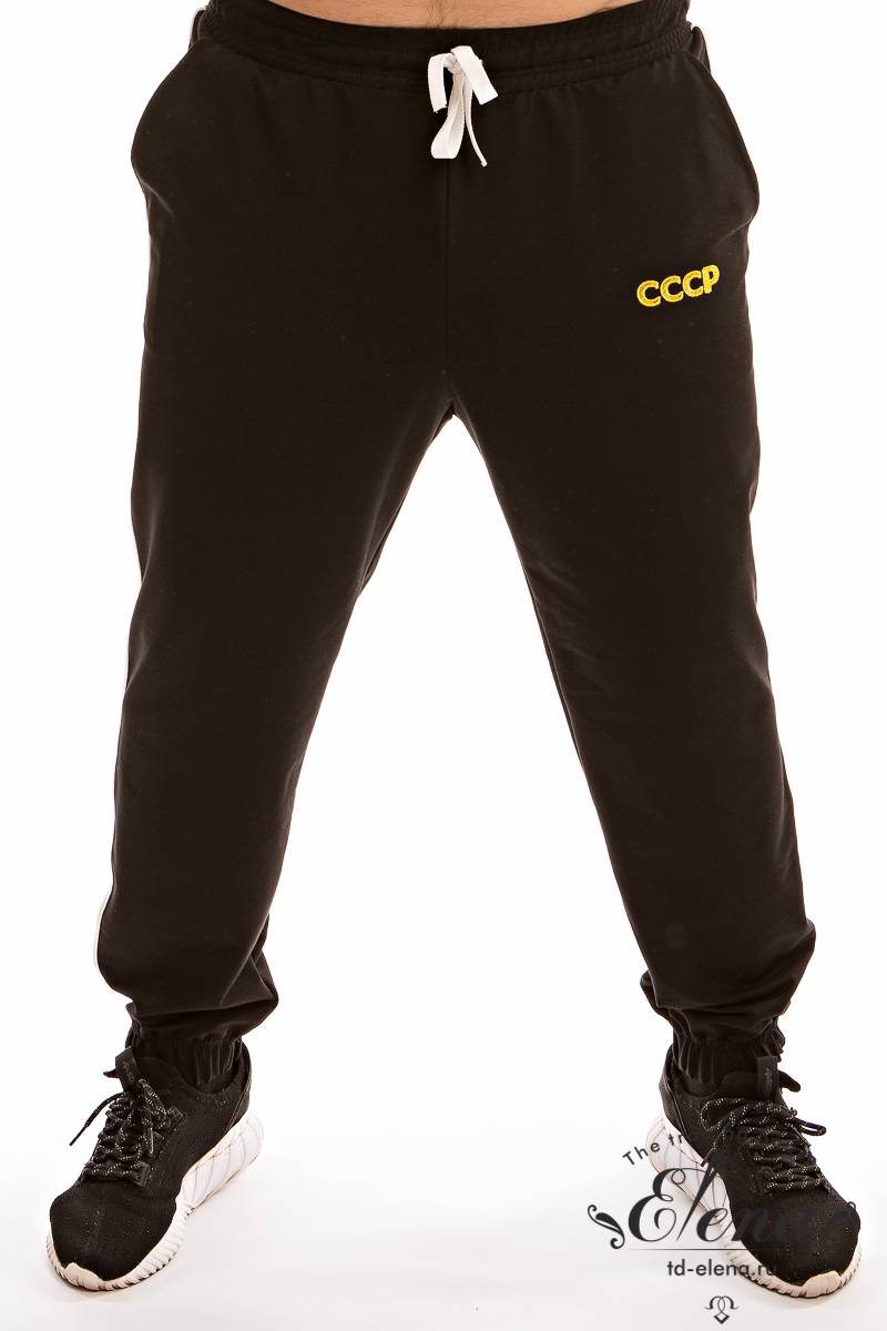 Брюки с вышивкой спереди выполнены из однотонного футера с лайкрой. Пояс притачной на резине и шнуре. По бокам размещены карманы. По низу брюки собраны на резинку.