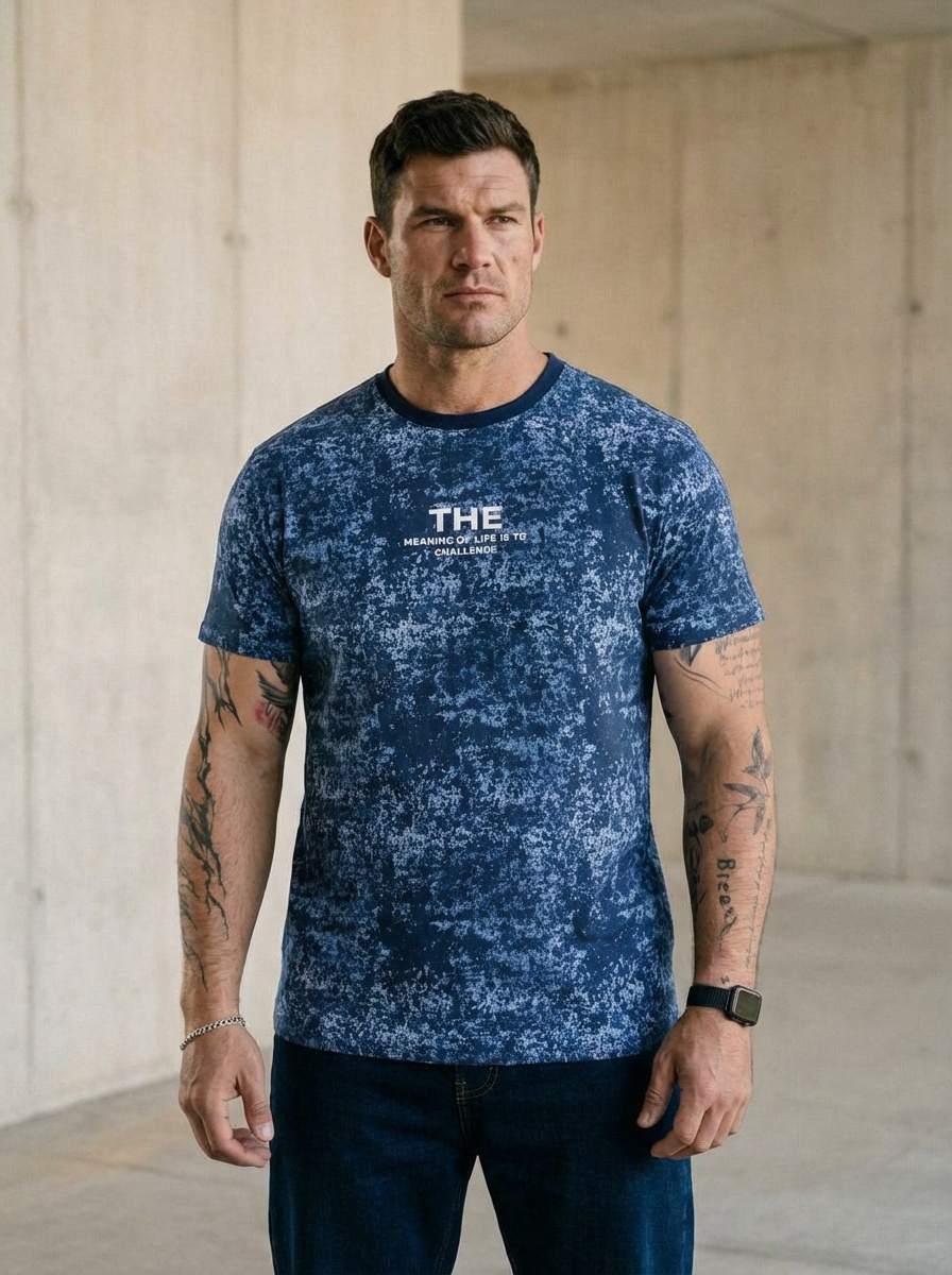 Мужская футболка из хлопкового полотна прекрасно подойдет для создания стильного и удобного образа. Футболка имеет прямой крой, короткий рукав и круглый вырез горловины, обеспечивая комфорт и свободу движений. Спереди нанесён принт.