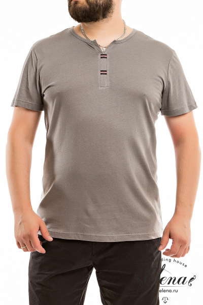 Футболка выполнена из однотонного хлопкового полотна. С коротким втачным рукавом. Горловина с декоративной планкой, обработана бейкой.