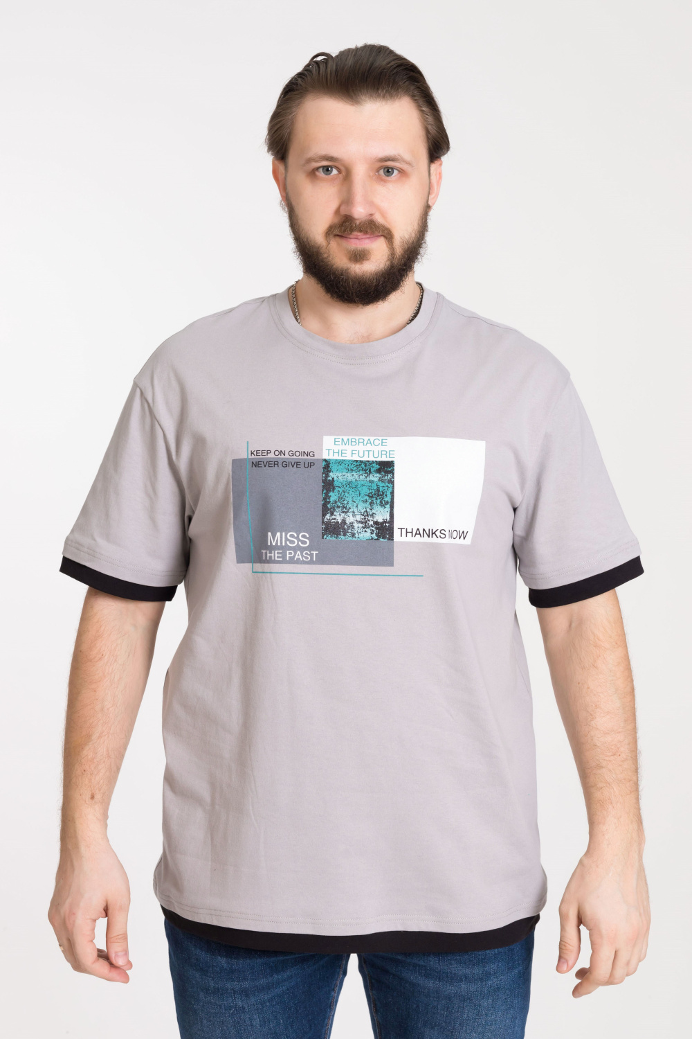 по низу изделия и рукавов другого цвета. Футболка свободная