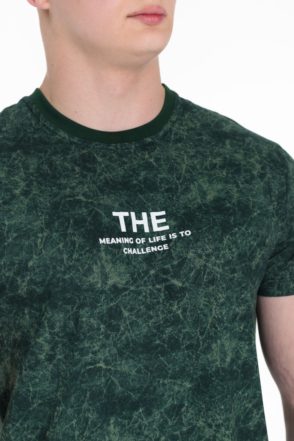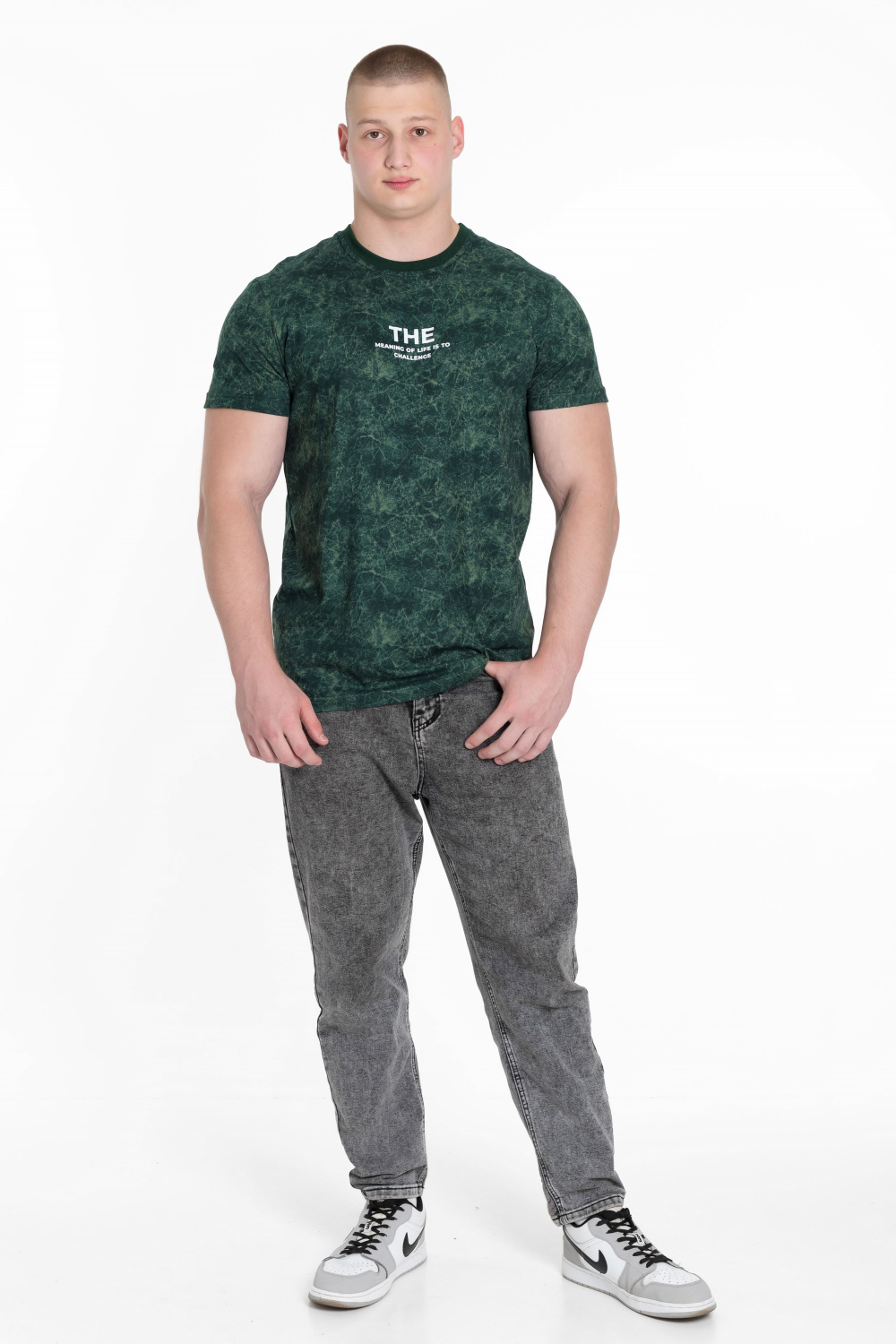 Мужская футболка из хлопкового полотна прекрасно подойдет для создания стильного и удобного образа. Футболка имеет прямой крой, короткий рукав и круглый вырез горловины, обеспечивая комфорт и свободу движений. Спереди нанесён принт.