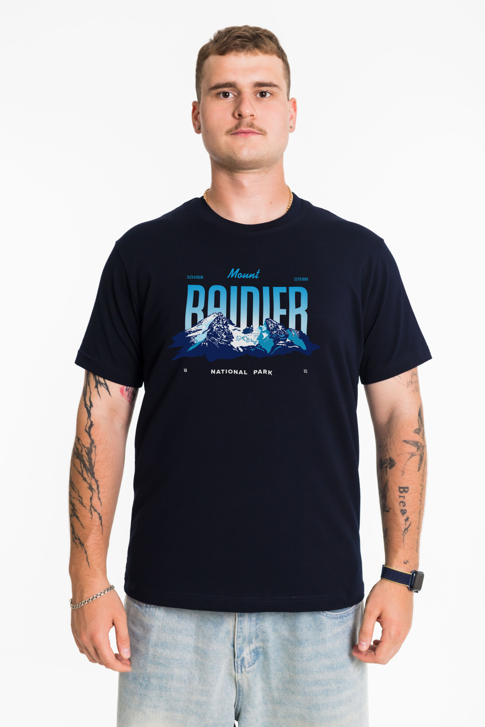 Мужская футболка с принтом изготовлена из хлопкового полотна с добавлением лайкры, что обеспечивает комфорт и хорошую воздухопроницаемость. Футболка имеет короткий рукав и круглый вырез горловины, что придает ей классический стильный вид. Изготовленная из натуральной ткани, футболка обеспечит комфорт в течение всего дня.