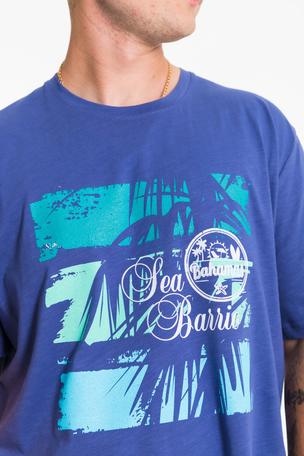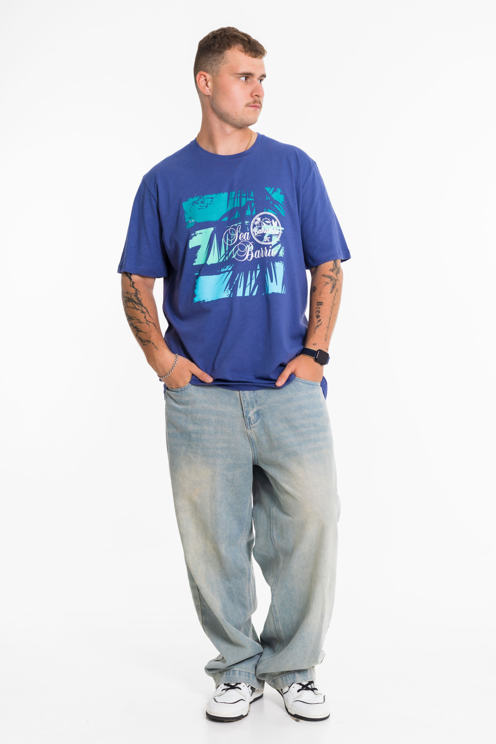 Мужская футболка с принтом спереди изготовлена из хлопкового полотна - кулирка "фламли", что обеспечивает комфорт и хорошую воздухопроницаемость. Футболка имеет короткий рукав и круглый вырез горловины. Изготовленная из натуральной ткани, футболка обеспечит комфорт в течение всего дня.