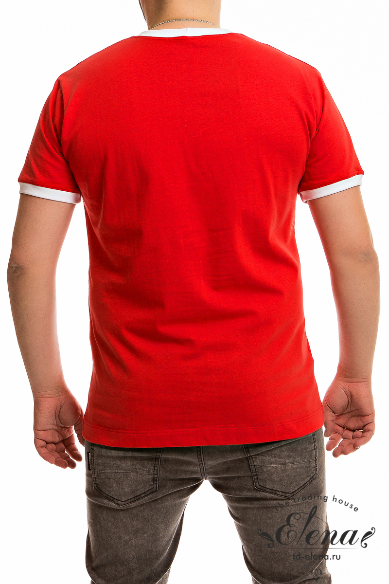 Мужская футболка с вышивкой спереди выполнена из однотонного хлопкового полотна. Горловина и низ рукавов обработаны планками из рибаны.