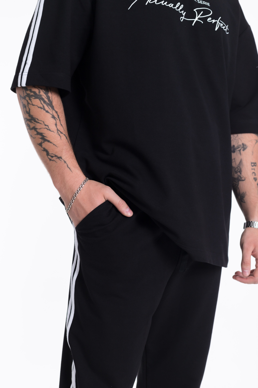 По боковым швам брюк, плечевой части полочки и рукаву проложены лампасы.